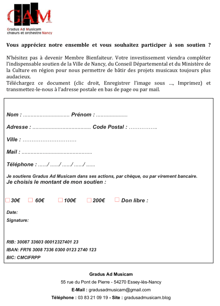 Devenez membre bienfaiteur de Gradus Ad Musicam